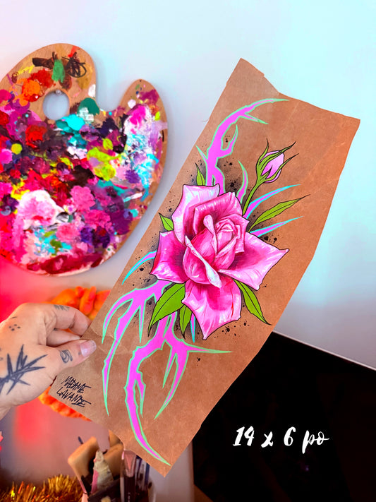Petite peinture sur bois "Elegant Funky Little Rose"